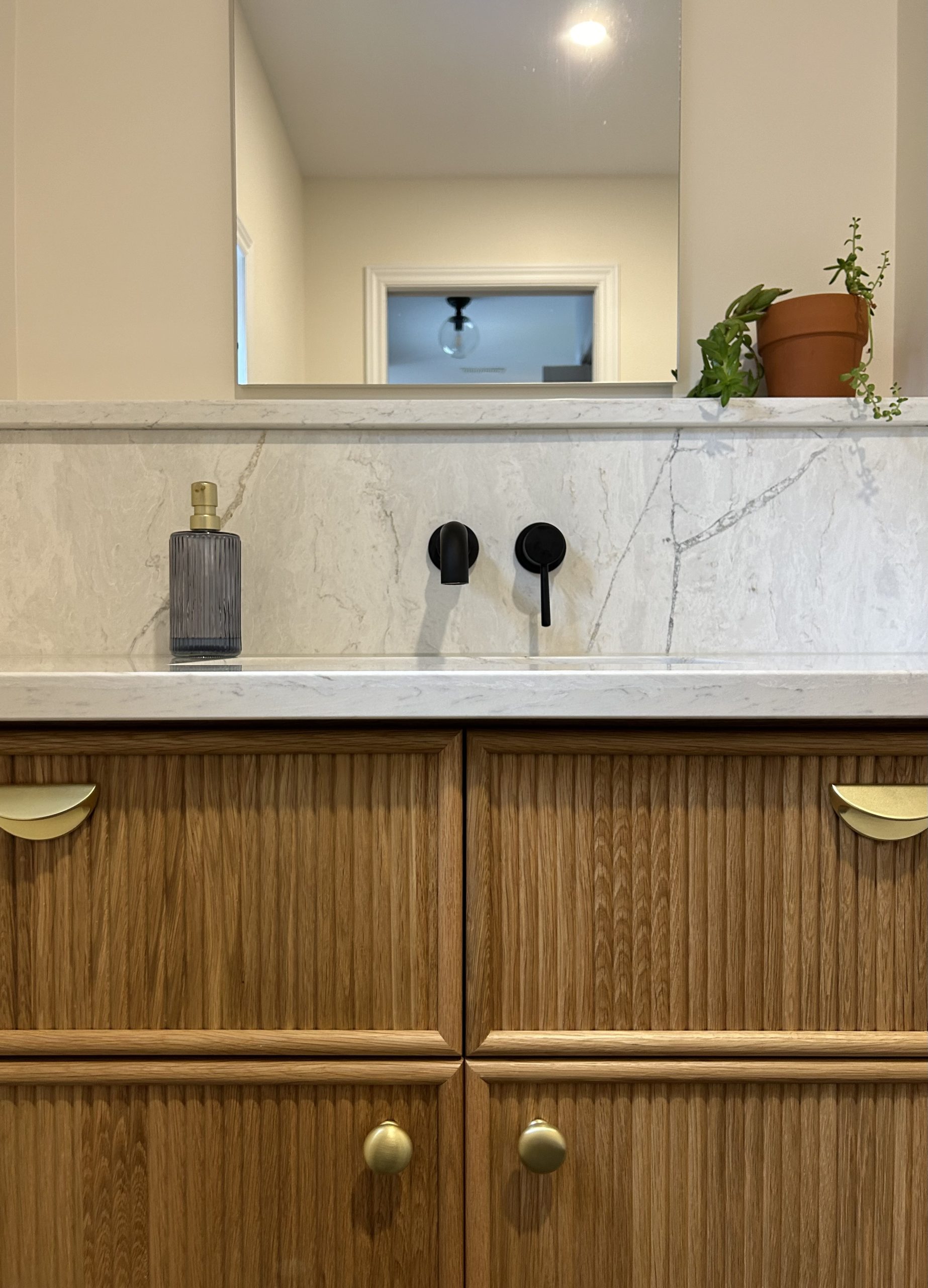 À mes yeux, la salle de bain doit refléter la sérénité et la propreté! Je créer une toile de fond sobre, des contrastes de matières, mais j’aime donner le ton tout en couleur et en texture pour les salles d’eau!